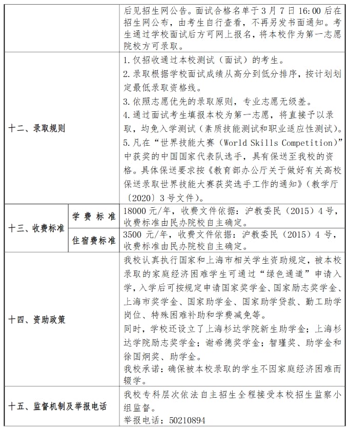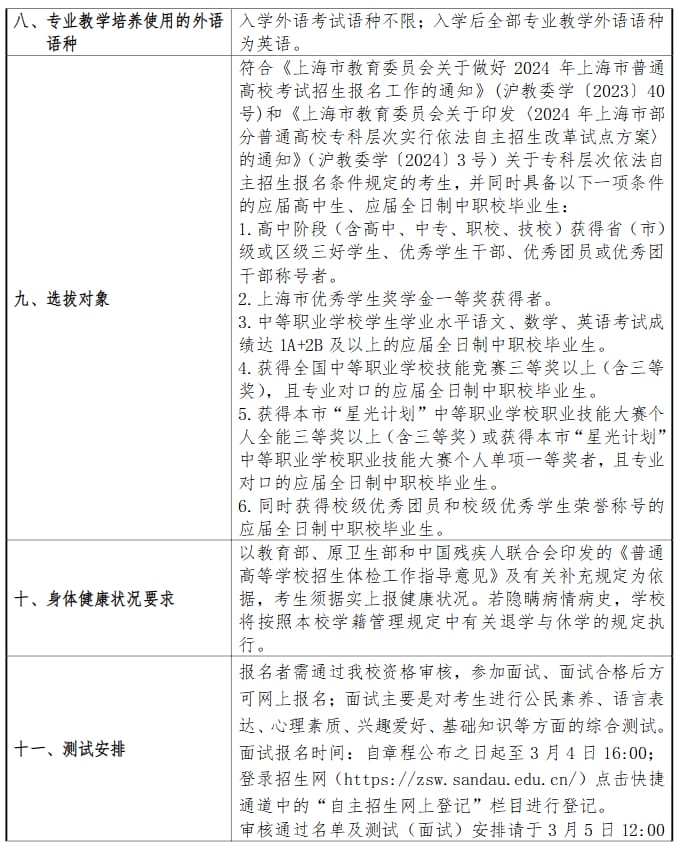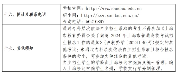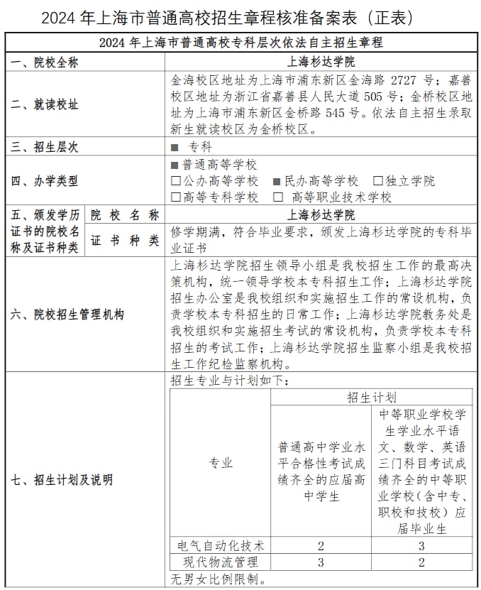 2024年上海杉达学院专科层次依法自主招生章程